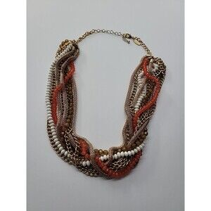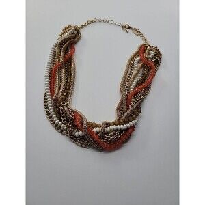 Vintage NY Necklace Multi Strand Beaded Chain Gold Tone Red Gold Twisted