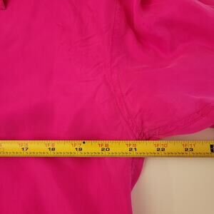 Vintage NY Studio Hot Pink Silk Blouse S Button Front Removable Shoulder Pads