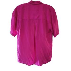 Vibrant pink 100% silk blouse with short sleeves, collar and button‑down front.