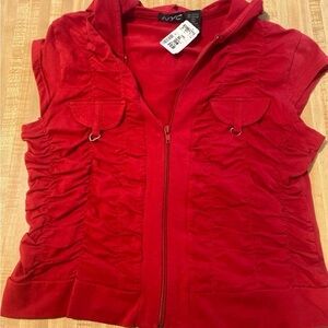 Vintage NYC Women Red Hooded Zipper Top NWT size L