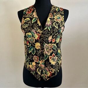 Vintage Nadia Black Floral Tapestry Vest Italian Fabric Made USA M/L 90s Y2K