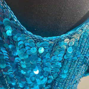 Sequins & hand beading throughout. Beaded fringe detail at the bottom edge.