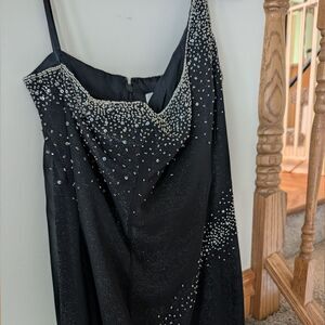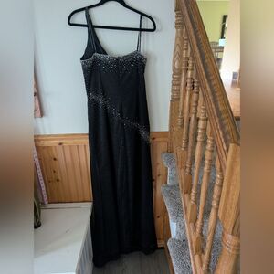 Vintage Nadine Black Metallic Sequin One Shoulder Evening Dress Size 10