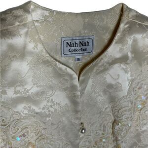 Vintage Nah Nah Collection Off White Pearl Button Up Blazer Floral Design 16