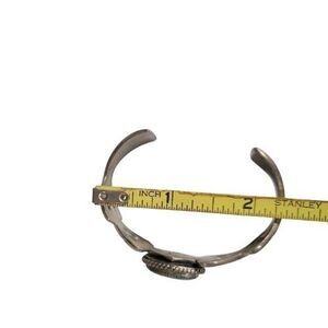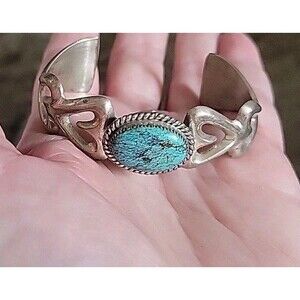 Vintage Navajo Sandcast Silver Turquoise Bracelet is a stunning piece of jewelry signed by renowned Native American artist Wilson Begay. The cuff bracelet features a beautiful turquoise stone set in unmarked silver, with a traditional Navajo design. The blue color of the turquoise stone adds a unique and vivid touch to the piece, making it a standout accessory for any outfit. Perfect for those who appreciate ethnic and regional jewelry, this bracelet is a timeless and authentic piece of Native American artistry.