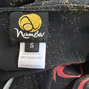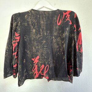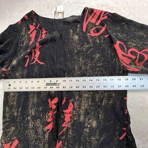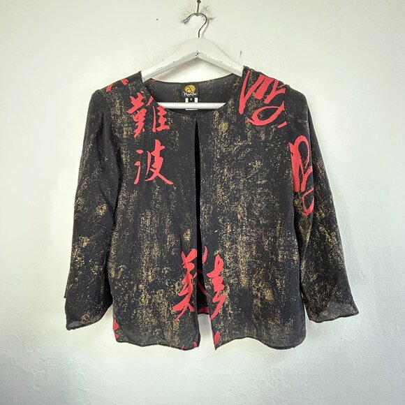 Vintage Namba Womens 100% Silk Asian Inspired Open Front Jacket Small Black Red