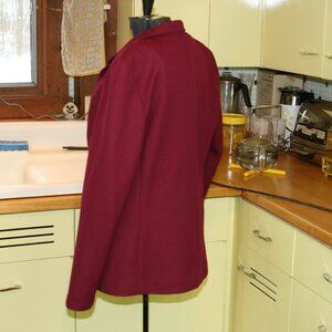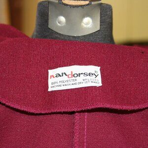 This is a blazer by Nan Dorsey. It is marked as being 100% polyester. It has a classic look to it. No size tags but it is about 25 inches long and 20 inches pit to pit. It is in nice shape.