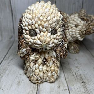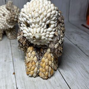 Vintage Nanco Sea Shell Animal Figurines Elephant Dog Folk Art Decor set of 3. 2 Dogs and 1 elephant. The one dog is a piggy bank and his shell nose is BROKEN