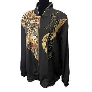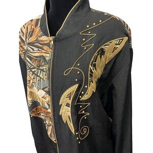 Vintage Nancy Bolen Women’s Embroidered Blazer Jacket Monstera Plant Print Sz 14