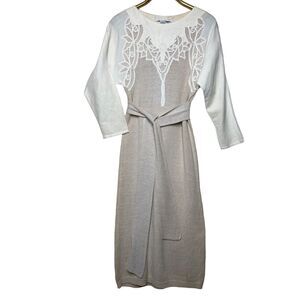 Vintage Nancy Johnson Knits Size Small Cream Sweater Dress Battenburg Lace Trim