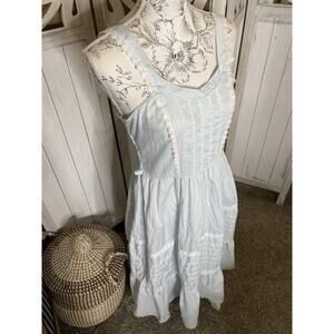 Vintage Nancy New York Prairie Pastel Blue Smocked Back Dress Size 7/8 USA Made