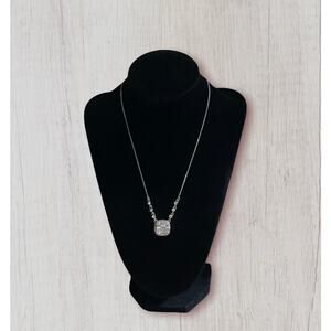 Vintage Nancy and Rise Signed Silver Crystal Accents Pendant. Pretty necklace features (6) small round crystals on the sides of the pendant, square pendant measures 1 1/4" across and top to bottom. Pendant is a halo setting w/ alternating silver dot design and imprinted leaf pattern on the sides of the setting. Chain measures 17", lobster claw clasp, and great for any ocassion day or night. Necklace is in great condition. Comes from a smoke free, pet free home.