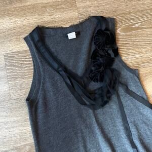 Vintage Nanette Lepore Wool Silk Trim Dress with Floral Applique Neck
