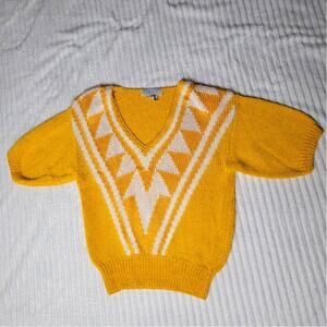 Vintage Nannell Yellow White Sweater S Angora Knit Puff Sleeve Grandmacore Top
