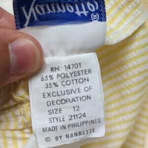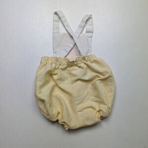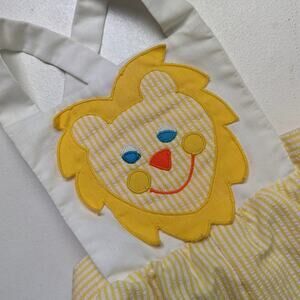 Vintage Nannette adorable yellow pinstripe sunsuit romper with a lion face chest. Size 12m