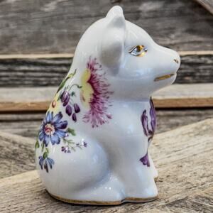Vintage Nantucket White Porcelain Cow Figurine w/ Spring Bouquet-Gold Accents