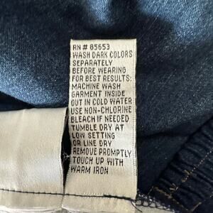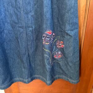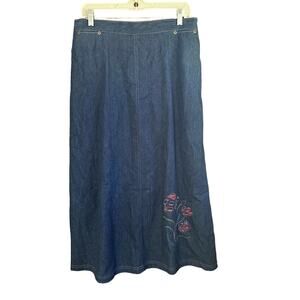 Vintage Napa Valley Midi Denim Skirt Modest Floral Embroidery Hem Slit Womens Size 14 Y2K 90s Cotton Polyester Blend