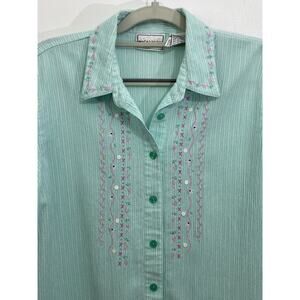 Vintage Napa Valley Shirt Medium Aqua Striped Embroidered Grandma Core