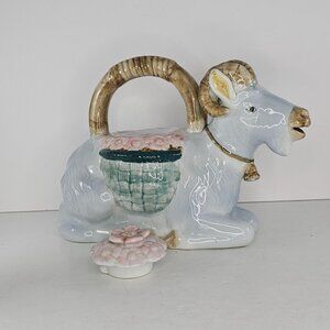 Vintage Napco Billy Goat Ram Teapot Porcelain Large Floral