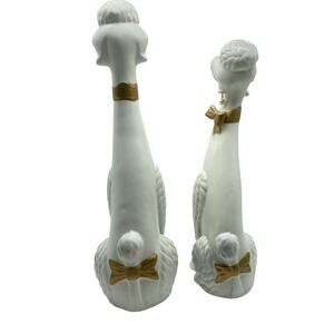 Vintage Napco Japan long-neck poodle figurines 1950 Kitsch MCM 13” White Set