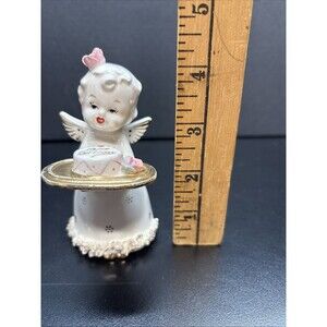 Vintage Napco Porcelain ANGEL Holding Happy Birthday Cake Japan