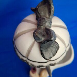 Vintage Napco Porcelain Head Vase - Girl with Umbrella 52/271 is 4 1/2" wide x 8 3/4" tall including umbrella. This beautiful young lady has blonde hair, a gray striped dress and coordinating hat and umbrella. She shows very slight paint wear and some excess glue on her lashes. No chips, cracks or repairs. Please view the pictures and feel free to ask questions. Thank you for visiting my shop.