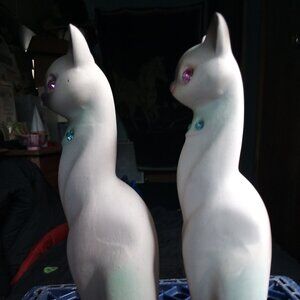 Vintage Napco Siamese Cats Ceramic Porcelain Figurines Pair - Measures 10" Tall - Excellent Condition, Small Discoloration Mark On Face (Pictured)