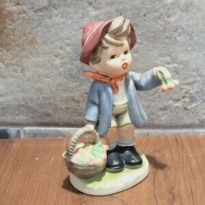 Vintage Napcoware Boy Holding Fruit Basket Porcelain Figurine 7656