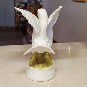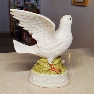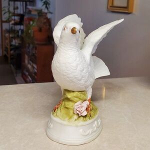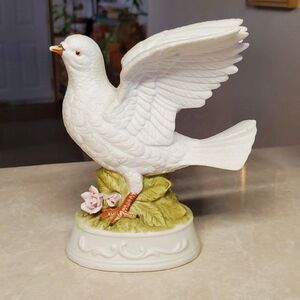 Vintage Napcoware 9479. White Dove porcelain fiqurine. In excellent used condition. The Dove is handpainted with its wings spread. It stands on a base with scrolls, leaves and roses. Measures 5 5/8". Near mint condition. No chips, cracks or crazing. Made in Mexico.