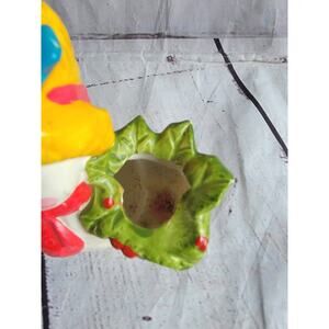 Vintage Napcoware Napco Mrs. Snowman 4in Candle Holder Holly Basket basket candle part is slightly broken please see photos