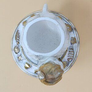 This ceramic trinket holder features a whimsical mermaid design with gold accents, ideal for organizing small items or as a decorative piece.