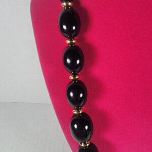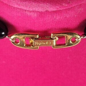 Vintage Napier Black & Gold Beaded Graduated 23" Classic Elegant Modest Necklace