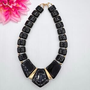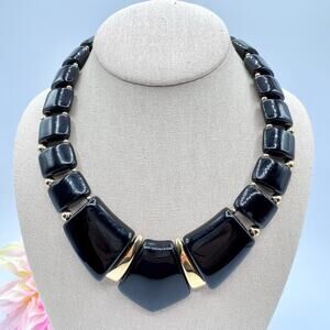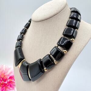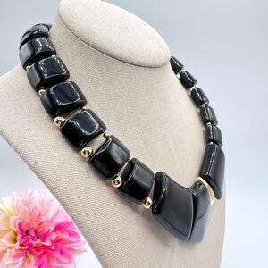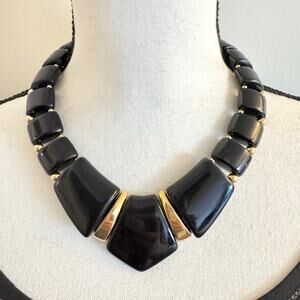 Vintage Napier Black Lucite Geometric V Collar Necklace Chunky 80s Signed Runway