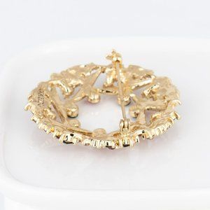 Vintage Napier Brooch Signed Gold Tone Circle Wreath Bright Deep Red Baby Pink