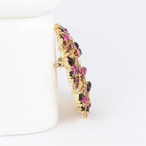 Keywords: Vintage Napier Brooch Signed Gold Tone Circle Wreath Bright Deep Red Baby Pink Marked Sparkle Round Wreath Metal Back Pin Wheel Flower - Multicolor Vintage, Retro Style Pin, Fashion Brooch, Signed Napier, Round Wreath, Circle Shape, Sparkle Rhinestone, Jean Jacket Flair, Brooch for Women, Brooch for Men