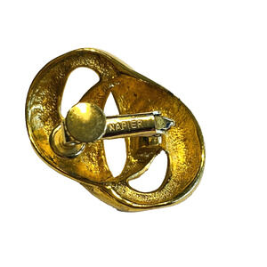 Vintage Napier Clip On Earrings Goldtone Chunky Retro 1980’s Boss Lady