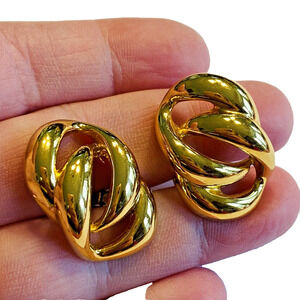 Vintage Napier Clip-On Earrings. Chunky goldtone metal intertwined chain links with a 1980’s Boss Lady style. Clearly hallmarked on the clips - these have the stylish elegant look Napier is known for. In excellent vintage condition - minor surface wear - no damage or flaws - so nice!