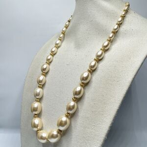 Vintage Napier Cream Lucite Pearl Beaded Necklace Gold Tone Statement 31” Long
