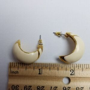 Vintage Napier Cream Enamel and Gold Tone Half Hoop Stud Earrings, Estate