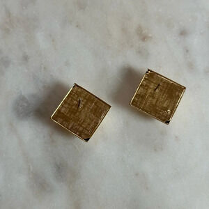 Vintage Napier Earrings Gold Tone Diamond Shaped Studs Cherry Red Enamel Center