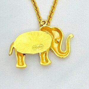 Vintage Napier Elephant Pendant Gold Tone Long Chain Signed