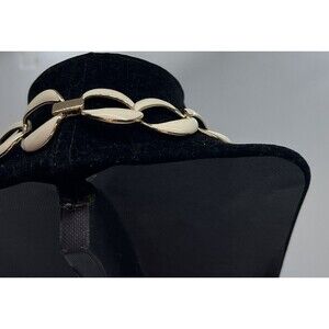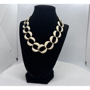 Vintage Napier Enamel White Links Flat Gold Chain Necklace.