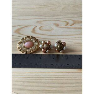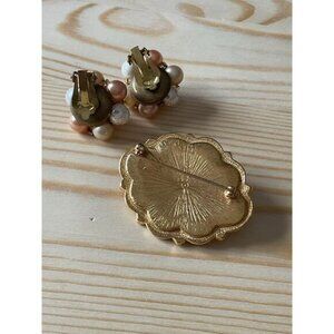 Vintage Napier Faux Pear Cluster Clip On Earrings and Pink Avon Pearl Brooch