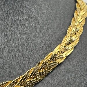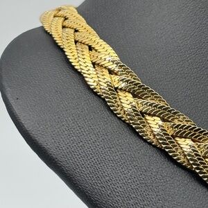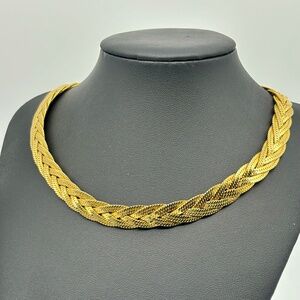 Vintage Napier Flat Serpentine Braided Gold-Tone Collar Length Necklace Gorgeous