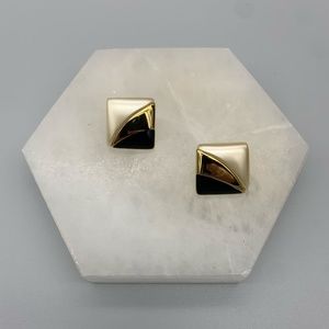 Vintage Napier Geometric Earrings 1980s Gold Tone Pearl Black Square Wave