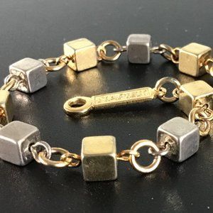 Vintage Napier Gold & Silver Tone Cube Bracelet Signed
