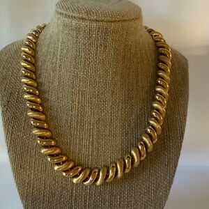Vintage Napier Gold Tone Alternating Shiny/Matt Chunky Necklace Fashion Jewelry