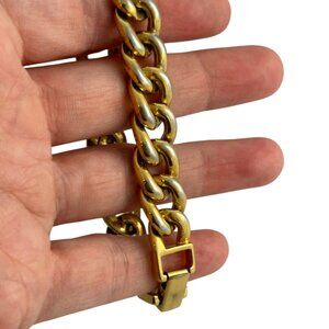 Vintage Napier Gold Tone Chunky Curb Chain Bracelet Fold Over Clasp 8" Retro