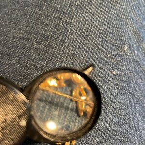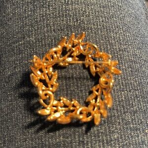 Vintage Napier Gold Tone Leaf Design Circle Pin with Lock Clasp - signed on pin