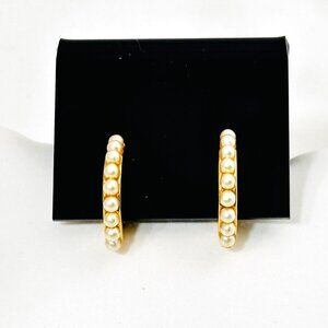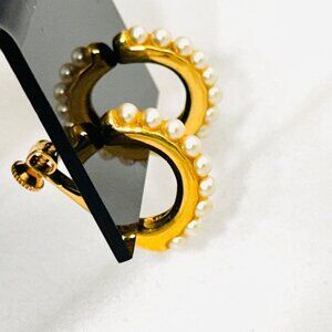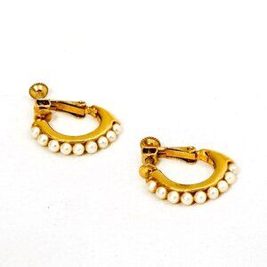 Vintage Napier Gold Tone Faux Pearl Half Hoop Screw Back Earrings